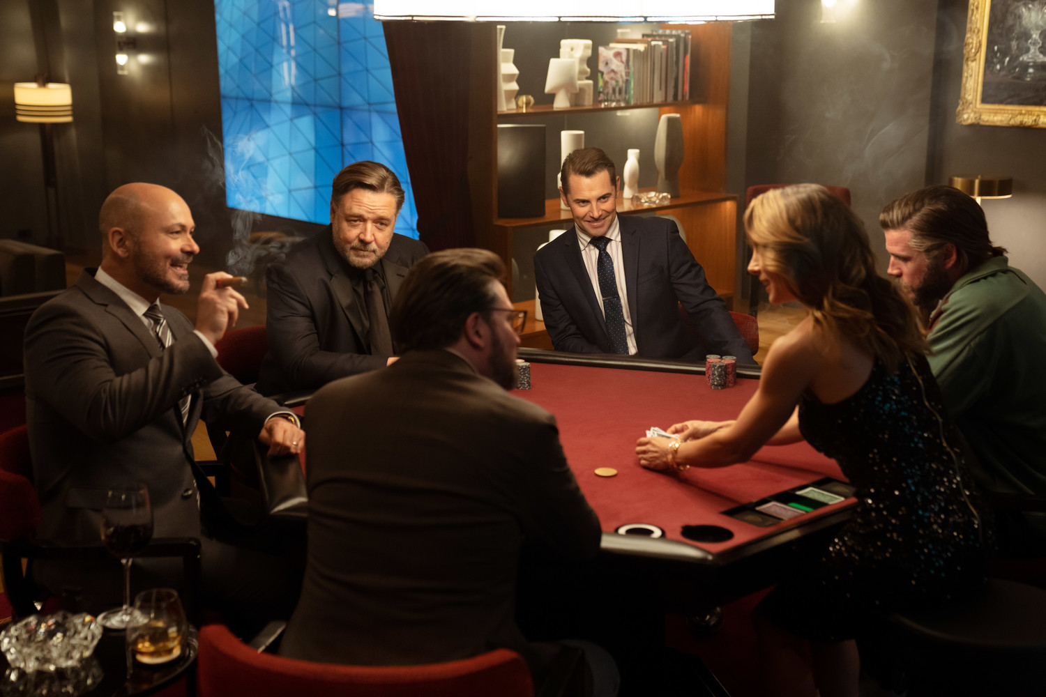 A tech billionaire hosts a high-stakes poker game between friends, but the evening takes a turn when long-held secrets are revealed, an elaborate revenge plot unfolds, and thieves break in.